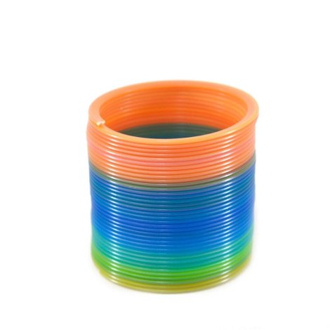 - Acessório flexível, de cores vibrantes, em forma de mola;